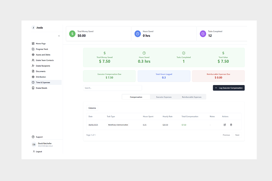 Josda is built for anyone responsible for settling an estate – executors, administrators, or personal representatives. If you’ve been tasked with handling someone’s affairs after they’ve passed, Josda is for you.